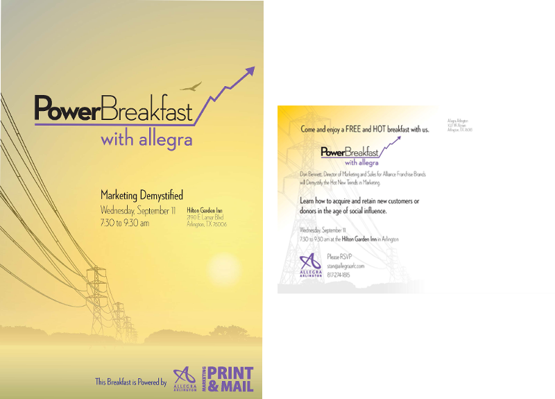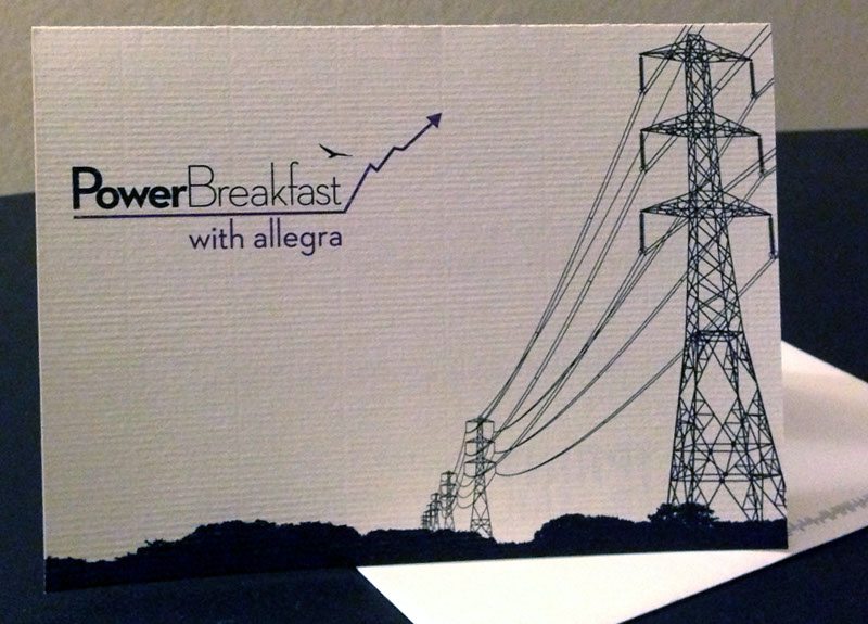 This became a quarterly breakfast for clients and has doubled the amount of marketing work Allegra receives. They continue to use the PowerBreakfast logo on tablets, mugs, and shopping totes.
